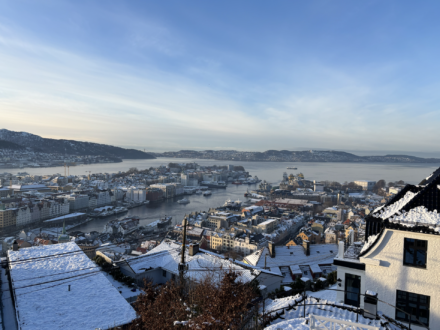 Lad os tage den fra starten. Da jeg landede i Bergen mandag d. 5. januar, blev nervøsiteten, der havde fyldt dagene op til afrejse, langsomt erstattet af forventningsglæde. Turen med bybanen fra lufthavnen ind til centrum var virkelig smuk, og jeg blev hurtigt betaget af fjeldene, der omgiver byen. Forventningsglæden fik dog et lille dyk, da jeg ankom til min lejlighed, som var iskold. Mine roomies havde været hjemme hos deres familier over julen, så lejligheden havde stået uden varme i lang tid, og samtidig var der usædvanligt koldt i Bergen. Og der sad jeg så, alene i en iskold lejlighed, og prøvede at minde mig selv om, hvorfor jeg egentlig var taget afsted.