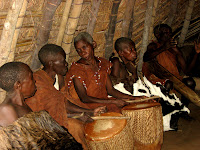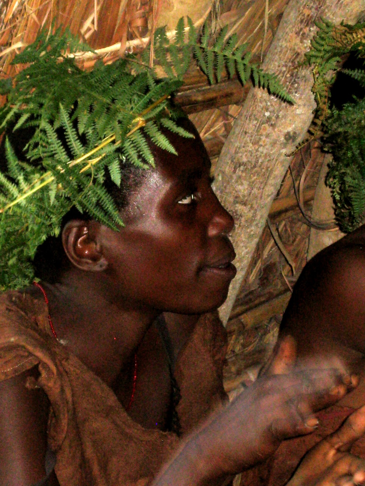 Afsted kom vi og et lille stykke op af bjerget på grænsen til batwaernes land (Dr scott grundliggeren af projektet og hospitalet har købt en del land til Batwaerne da deres eget blev taget fra dem og lavet til nationalpark) blev vi mødt af 6 ældre batwaer klædt i oprindeligt tøj. De skulle følge os op af bjerget samtidig med at de fortalte om deres kultur og historie, vel og mærke på Luchika, så der blev tolket for at vi kunne være med. Vi havde ikke regnet med at vi sådan skulle præsenteres for hele den tur som turister normalt er på når de besøger centeret (og som de betaler en del for), men det blev vi.